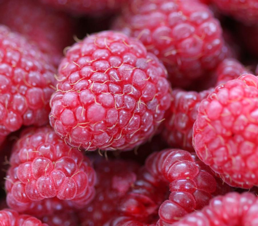Thornless Red Raspberry Varieties - Killarney raspberry plant has upright, sturdy canes with bright red berries.